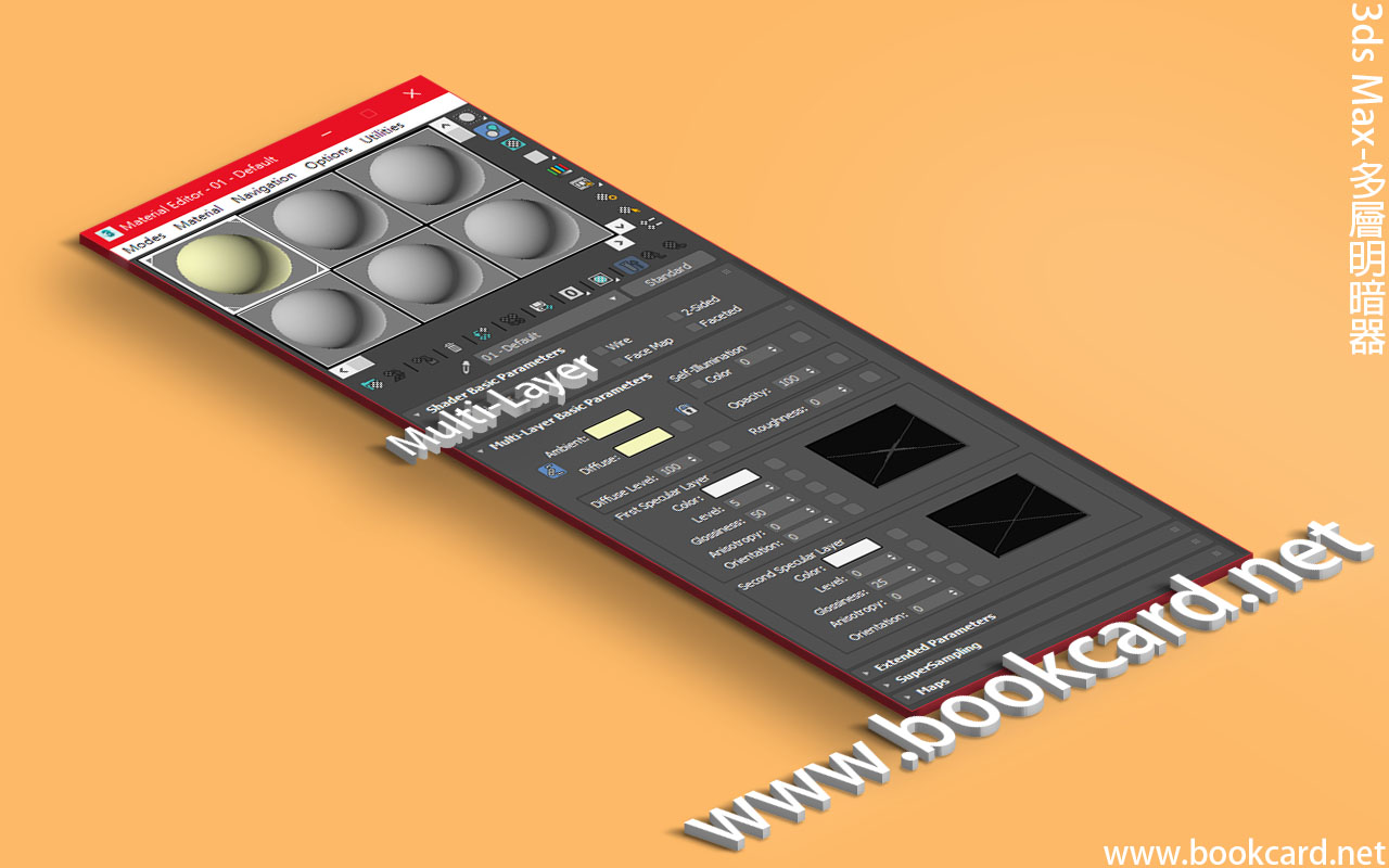 『多層』Multi Layer明暗器含有兩『各向異性』Anisotropic明暗器.擁有兩組不同顔色.給予材質表面增添深度感.讓木財呈現出蟲膠清漆感,使瓷片呈蠟質光澤
