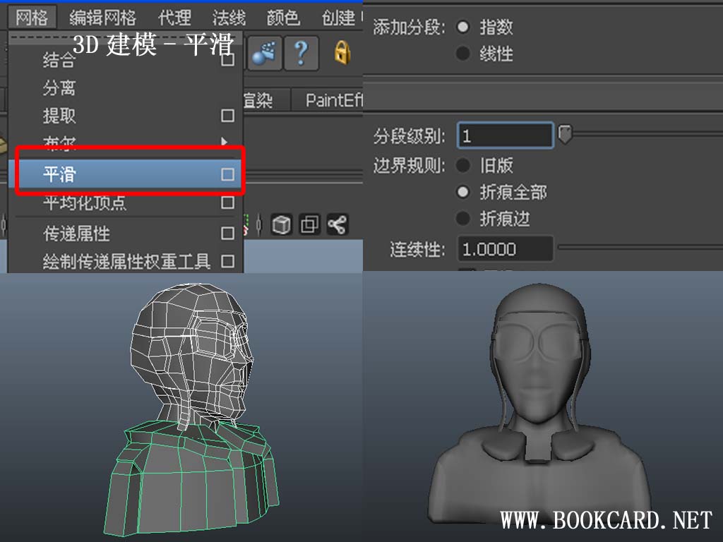 Maya之平滑 作者:月和經倫 2017 年 8 月 8 日2018 年 10 月 21 日 在《Maya之平滑》發佈留言 3D建模-平滑 3D建模-平滑 通過對多邊形添加分段來平滑模形,此Maya功能簡單快捷.但缺點是它是不可的逆轉,要做好備份 按F8選擇多邊形 網格/平滑/選項(Mesh/Smooth/Options) 分段級別(Division levels)範圍為1到值越大多邊形對象就越平滑.默認為1.一般填1或2. 連續性(Continuity) 範圍為0到1.值越大多邊形對象就越平滑.默認為1 作者:月和經倫 月和經倫 檢視更多文章