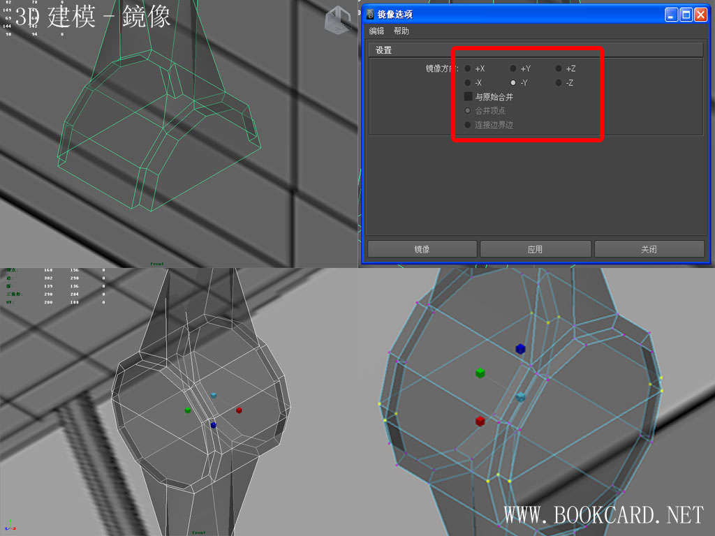 - 選擇鏡像方向一共六個方向+X,-X,+Y,-Y,+Z,-Z.
