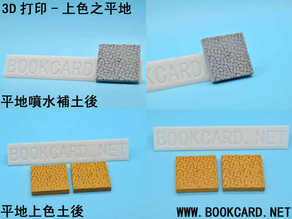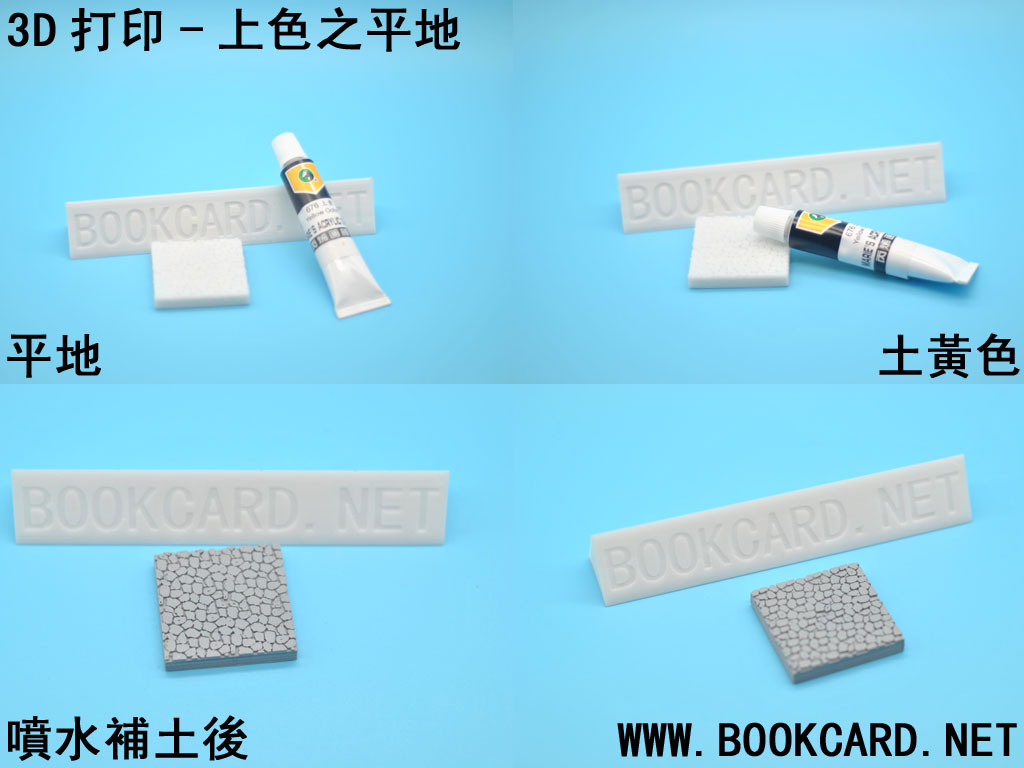 3D打印-上色之平地 作者:月和經倫 2017 年 10 月 21 日 在《3D打印-上色之平地》發佈留言 3D打印-上色之平地 3D打印-上色之平地 平地上色是最簡單的.左邊是無噴水補土的,右邊有噴水補土,兩者最終效果差不多. 打印平地模型 準備水補土,不要噴得太厚 準備丙烯顏料,平地上的是泥土,當然是使用土黃色(676),也可以通過紅色對黃色2:5的比例來配出土黃色. 準備一支1#畫筆. 注意水不要落太多.幹透後在上第二次色. 顏料太濃的話也會堵塞間隙. 一到兩次就可以完成上色.當然也可以不噴水補土. 上色次數越多效果越好. 作者:月和經倫 月和經倫 檢視更多文章