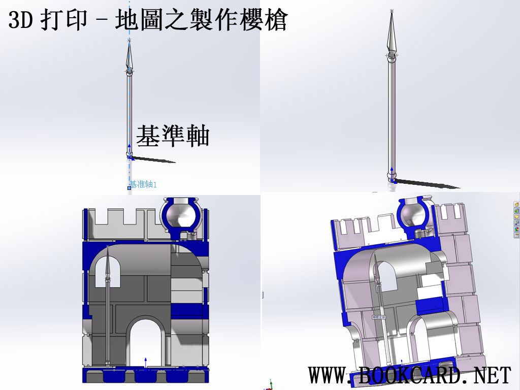 - 選擇”圓柱”,點選擇木杆實體,生成”櫻槍基準軸”.
