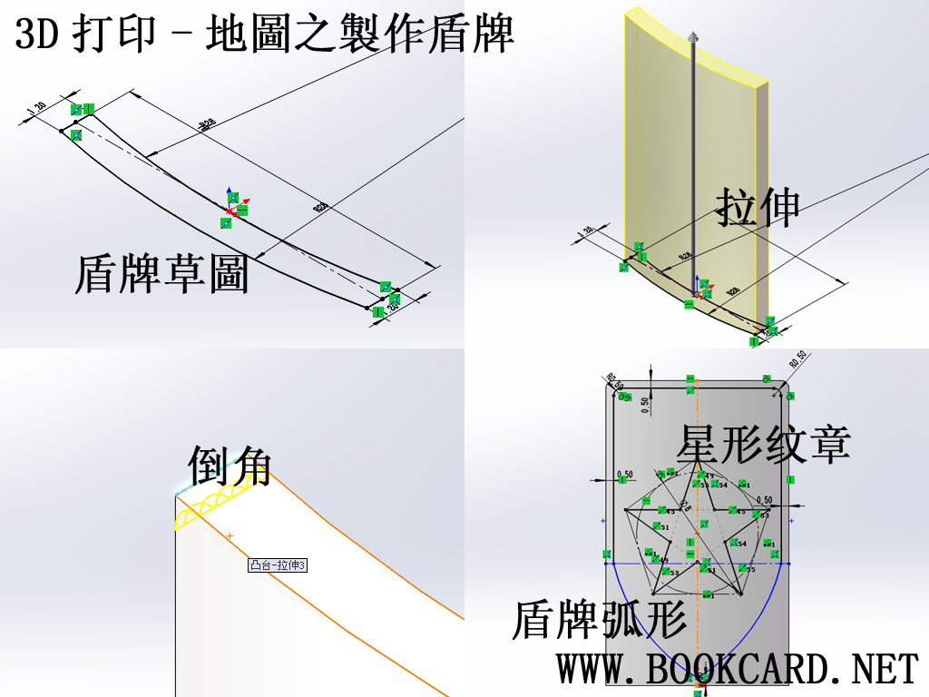 10. 使用”特徵/倒角”工具,對盾牌所有邊進行倒角