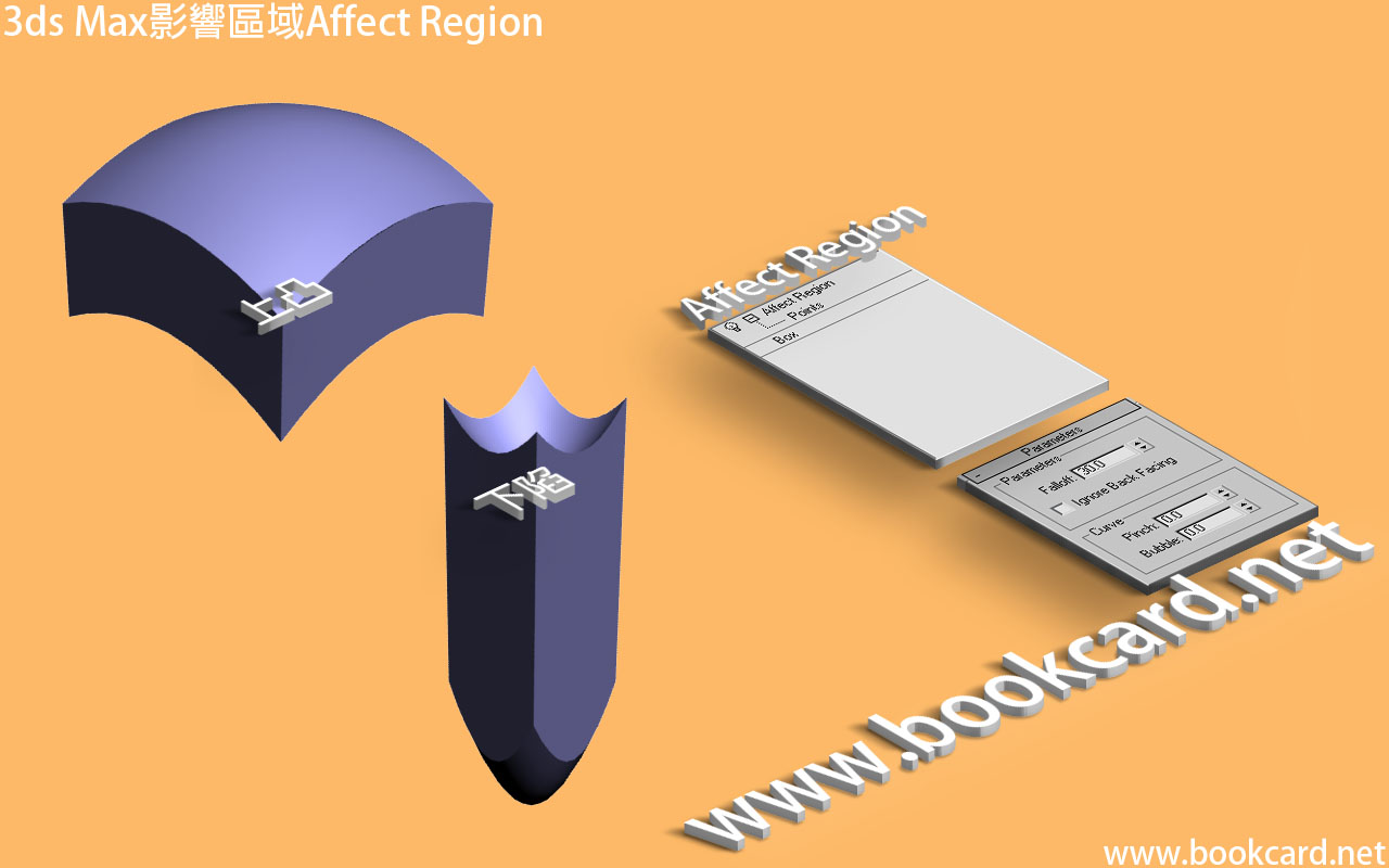 3ds Max『影響區域』Affect Region可使選定子對象表面區域『上凸』或『下陷』