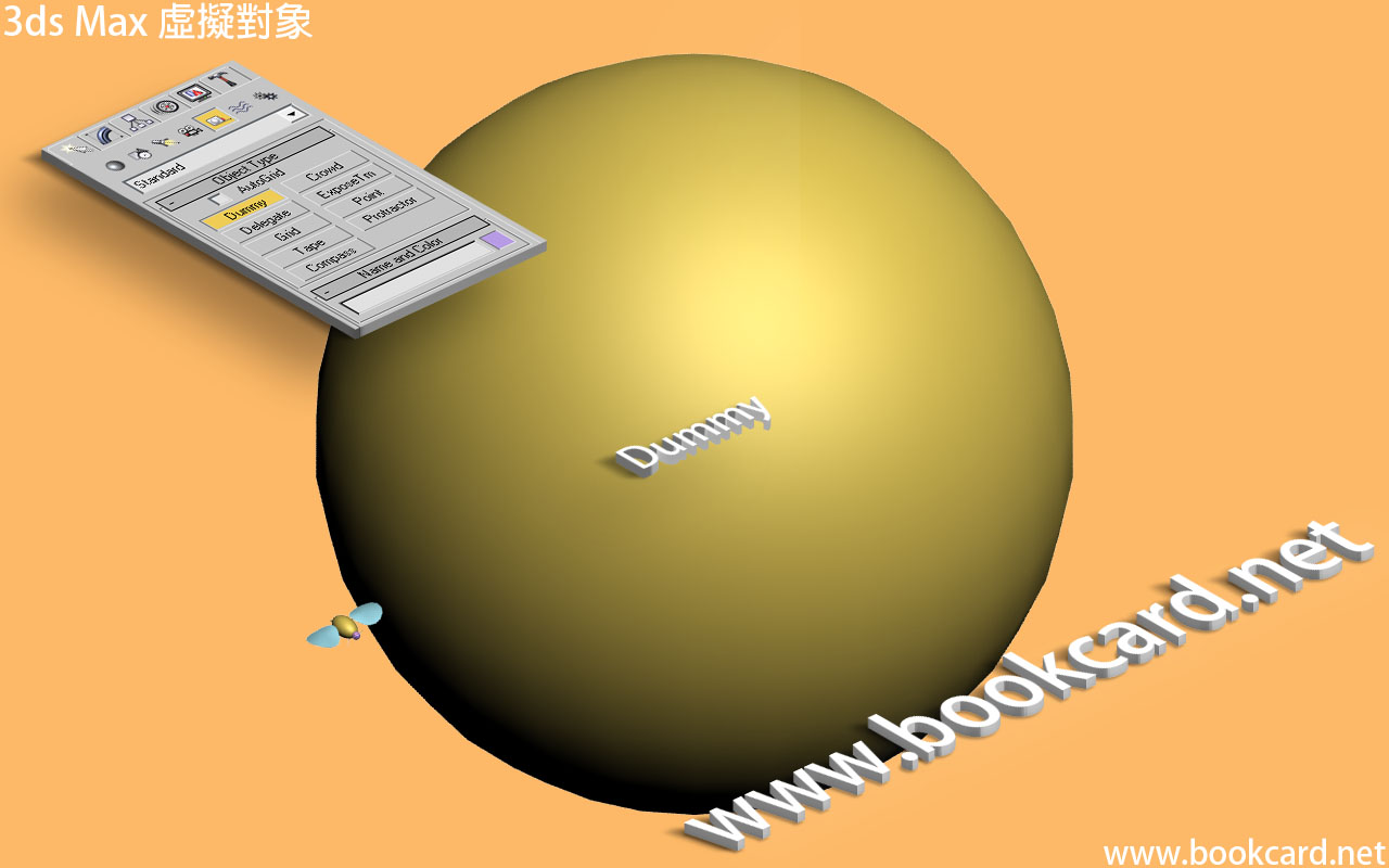 | 『命令面板->創建->輔助對象->標準->虛擬對象』 | Command Panel->Create->Helpers->Standard->Dummy