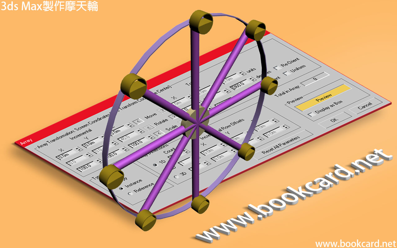 以製作『摩天輪』為例講解 3ds Max『圓形陣列』圍繞『對象』中心進行『克隆』