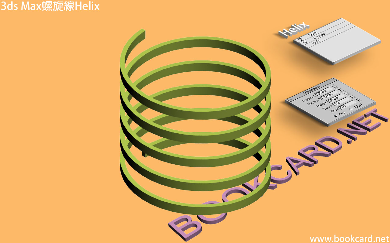 3ds Max『螺旋線』Helix類似彈簧線圈.是所有基本樣條線中唯一3D圖形.