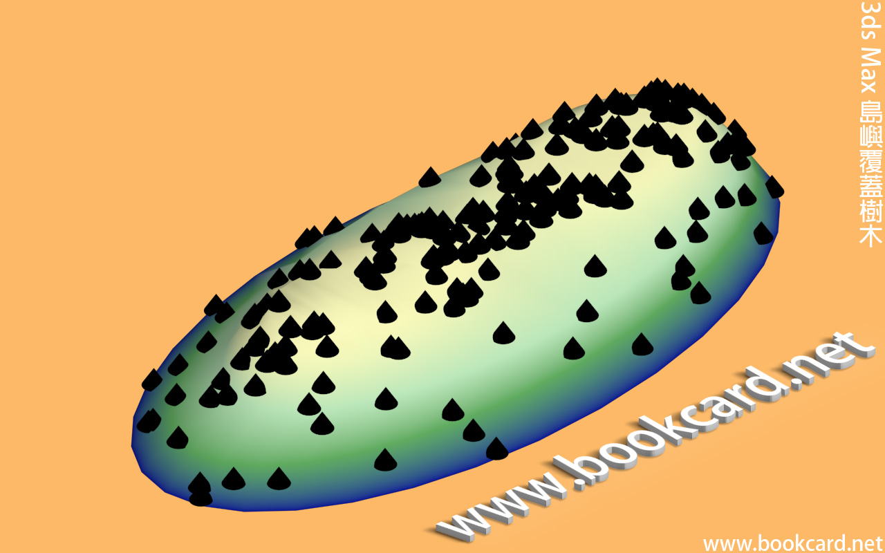 3ds Max 島嶼覆蓋樹木3ds Max用『散布』工具令『島嶼』遍佈『樹木』.