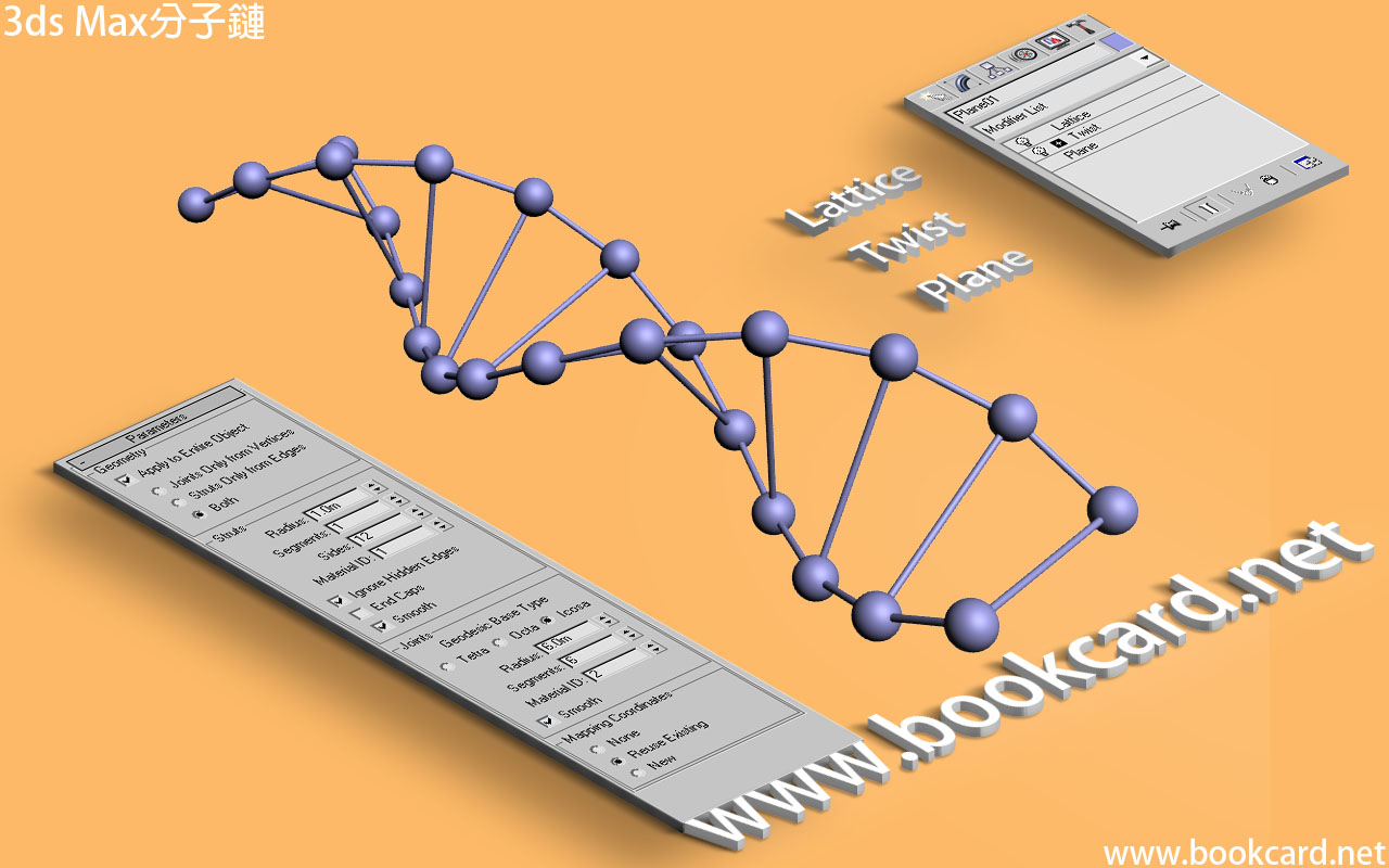 3ds Max使用『修改器』『晶格』與『扭曲』製作『分子鏈』.