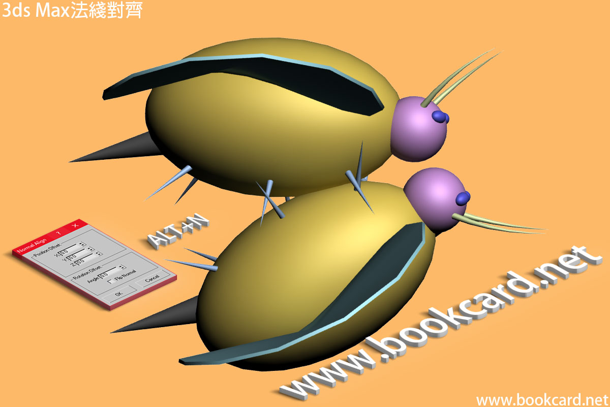 3ds Max『法線對齊』其優在可將兩面『對齊』, 『法線對齊』就是利用面『法線』達到. 『法線』為垂直於面中心射綫.
