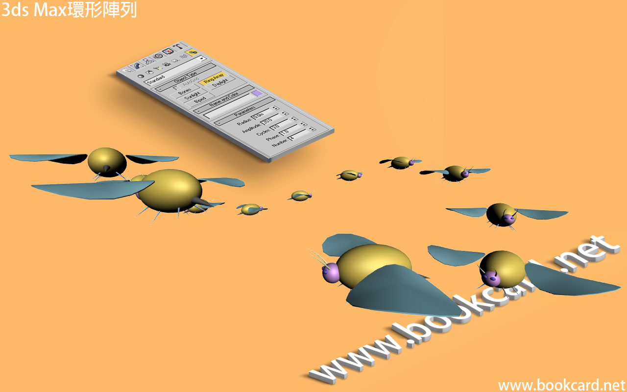 3ds Max『環形陣列』與『圓形陣列』類似 .令『克隆對象』呈『波浪』狀.需配合『克隆並對齊』工具使用.