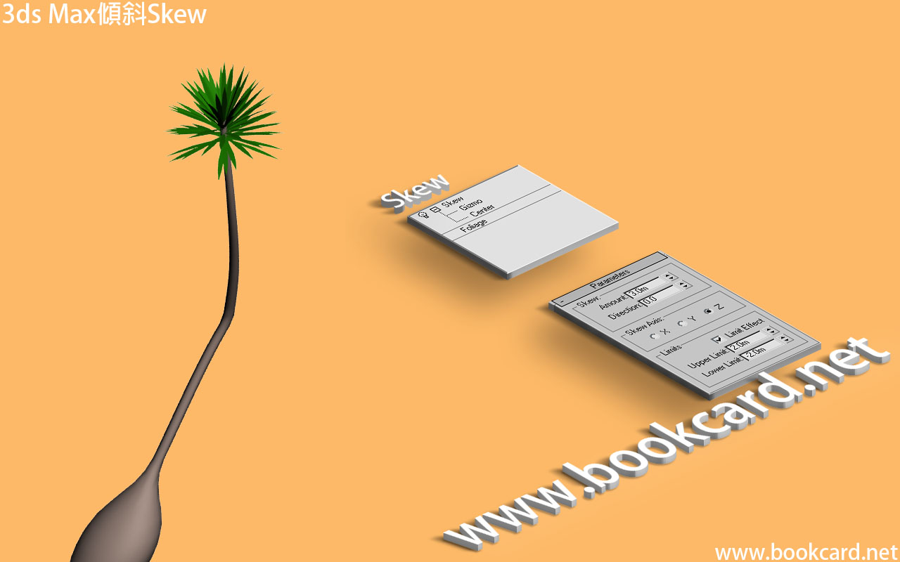3ds Max『傾斜』Skew可在半固定底部同時移動頂部以更改對象傾斜度.