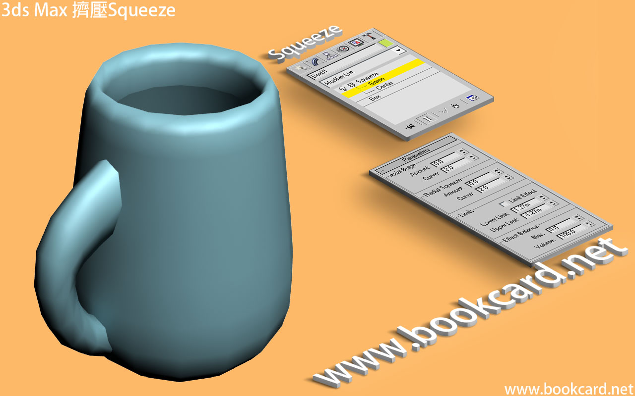 3ds Max『擠壓』Squeeze對象,通過移動Gizmo或Center將對象擠壓變形.
