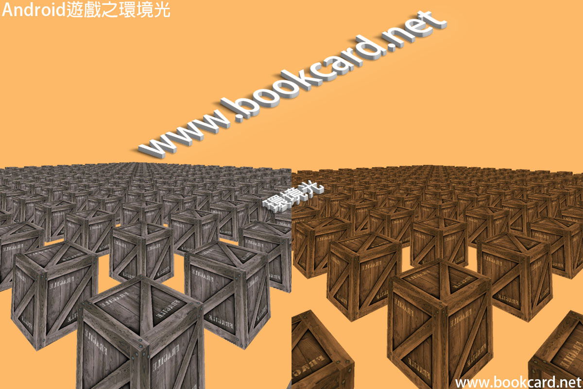 環境光是一種特殊光.它沒有位置和方向.它只會均勻照射3D空間中所有物體.在OpenGL ES中啟用全域環境光.