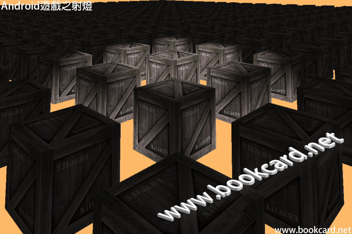 射燈是OpenGL ES中燈光中最耗GPU資源燈光.但其3D效果十分逼真.睇上圖.射燈有多個參數需指定.『位置』『照射方向』『照射角度』小於180度、『衰減指數』小於零,若設為0則亮度不衰減,實制『衰減值』與遊戲3D空間尺寸有關.這裡設為0.01.以及三個光照顏色『環境色』『漫反射色』『鏡面反射色』