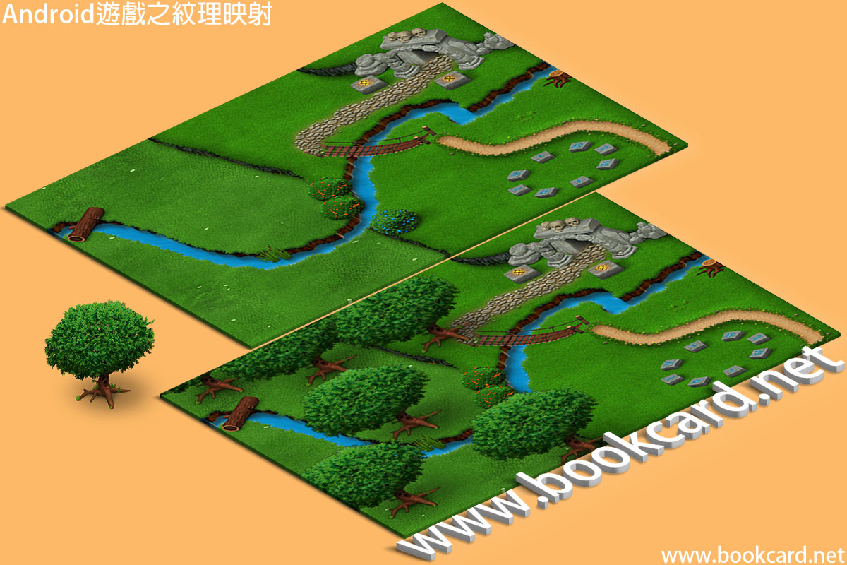 將『Bitmap』加載給OpenGL ES然後加載到圖形卡記憶體重,並最終交給GPU渲染.因為OpenGL最終以三角形為單位進行渲染.而將『Bitmap』映射到三角形上.需要為三角形每個頂點設定紋理座標(texture coordinates).3D座標(x,y,z)和2D座標(x,y)對應紋理座標(u,v)位圖頂點.而(u,v)座標相當於(橫,縱)座標.紋理寬與高必需是2倍數.