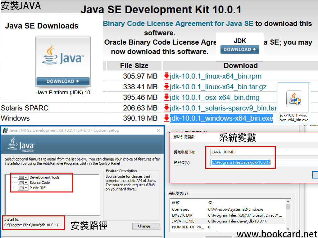- 首先要下載Java SE(Standard Edition) Development Kit簡稱(JDK) 下載jdk-10.0.1_windows-x64_bin.exe(JDK10只有x64版本)