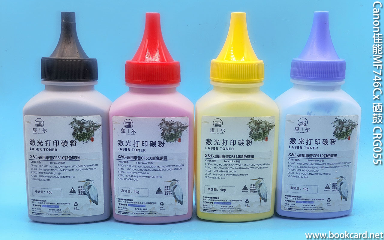 Canon佳能MF746Cx碳粉耗盡, 原厰 CGR-055硒鼓貴, 買副鼓有『廢粉㝫』『入粉㝫』.撳左側制翻蓋,抽出硒鼓匣, 排列按『Y』『M』『C』『K』