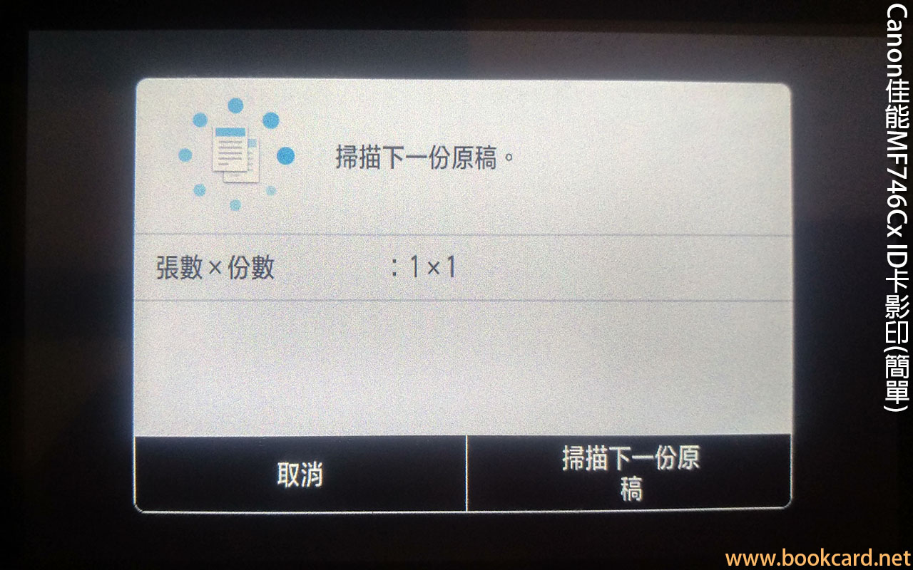 Canon佳能MF746Cx ID卡影印(簡單) 作者:月和經倫 2021 年 2 月 5 日2021 年 2 月 6 日 在《Canon佳能MF746Cx ID卡影印(簡單)》發佈留言 『ID卡影印(簡單)』ID Card Copy(Simple)係同一張A4紙影印『ID卡』『正反面』,『正面』在A4紙上側,『反面』在A4紙下側. 以『Canon MF746Cx』為例. 『ID卡』正面朝下,擺在『原稿台』玻璃上側居中. 保留一定邊距. 撳『ID卡影印(簡單)』ID Card Copy(Simple)掃『正面』 『ID卡』反面朝下, 同样擺在『原稿台』玻璃上側居中. 撳『扫描下一份原稿』掃『反面』 作者:月和經倫 月和經倫 檢視更多文章