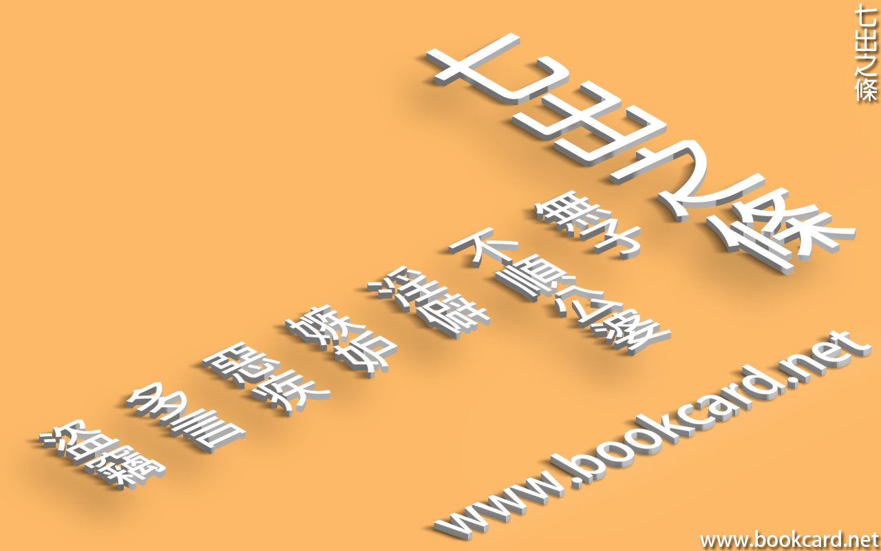 七出之條 作者:月和經倫 2020 年 3 月 16 日2020 年 3 月 16 日 在《七出之條》發佈留言 舊時夫家休棄妻室.需以『七出之條』否則視作無理休妻.所謂『七出』是指七種趕出傢門理由幷納入律例. 罪名 理由 無子 絕世/絕嗣 納妾處理,避免休妻 不順公婆 逆德 違逆『家公』『家婆』 淫僻 亂族 即『通奸罪』文明囯度『日』『台』依然存在 嫉妒 亂家 妻妾之間嫉妒. 惡疾 不可共粢盛 未能准備祭祀供品.以此條休棄多為底下階層 多言 離親 講事講非 盜竊 反義 偷竊夫家『財物』『車船』『田地』. 作者:月和經倫 月和經倫 檢視更多文章
