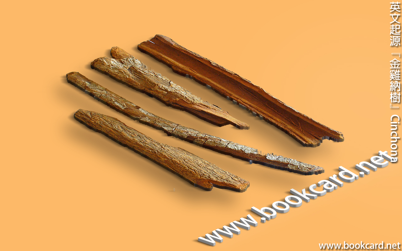 英文起源『金雞納樹』Cinchona 英文起源『金雞納樹』Cinchona『金雞納樹』Cinchona產於南美洲,但只有『祕魯』產『黃金雞納』Calisaya.其樹皮是治療『瘧疾』特效藥.