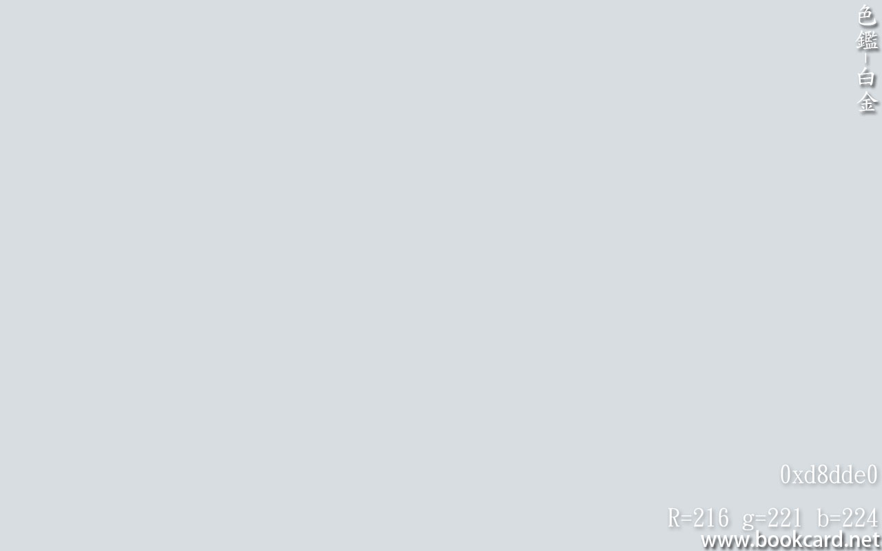 色鑑-白金 作者:月和經倫 2023 年 7 月 21 日2023 年 7 月 22 日 在《色鑑-白金》發佈留言 色鑑-白金 『白金』又呌『鉑金』,稀有貴金屬,白雪閃燿,『白金』手飾制品,市面流通小,貴買賎賣.要保值買黄金. 白金 英文 Platinum RGB 0xd8dde0 RGB R=216 g=221 b=224 CMYK C=5 M=0 Y=0 K=18 用途 手飾 作者:月和經倫 月和經倫 檢視更多文章