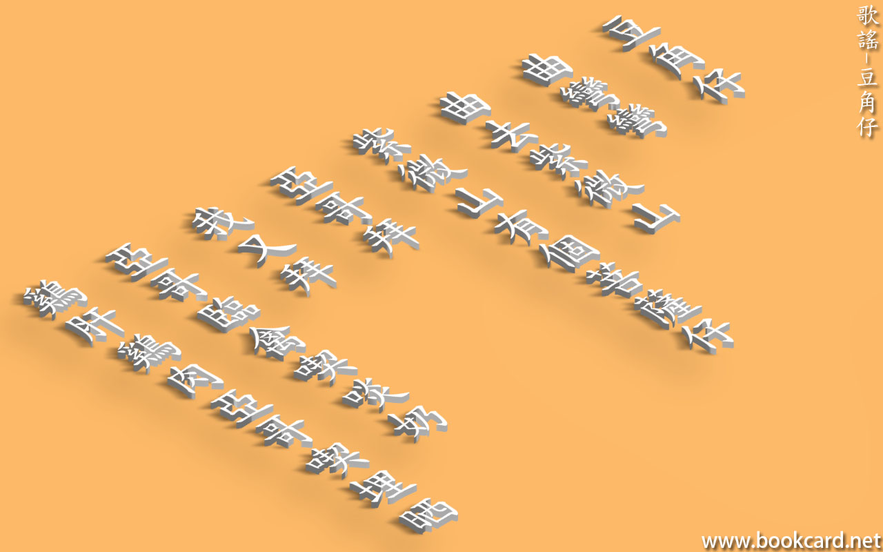 歌謠-豆角仔 作者:月和經倫 2022 年 8 月 20 日2022 年 8 月 20 日 在《歌謠-豆角仔》發佈留言 歌謠-豆角仔 豆角仔 曲彎彎 曲去紫微山 紫微山有個菩薩仔 亞哥拜 我又拜 亞哥臨禽喫啖奶 鷄肝鷄肉亞哥喫埋晒 作者:月和經倫 月和經倫 檢視更多文章