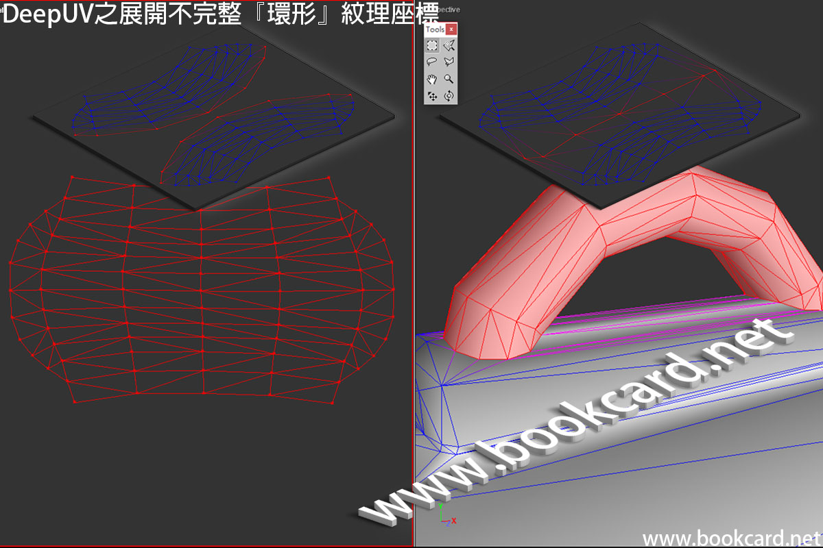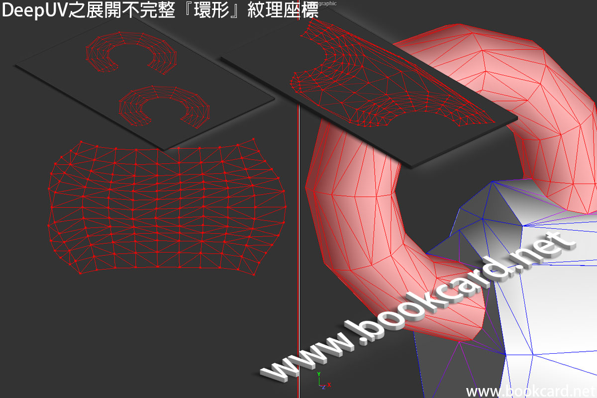 DeepUV對『環形』或者『彎曲圓柱體』展開紋理座標需要技巧,因為DeepUV無環形展開,你需要將環形分成兩部分,展開後在連接一起.這裡以展開不完整環形為例