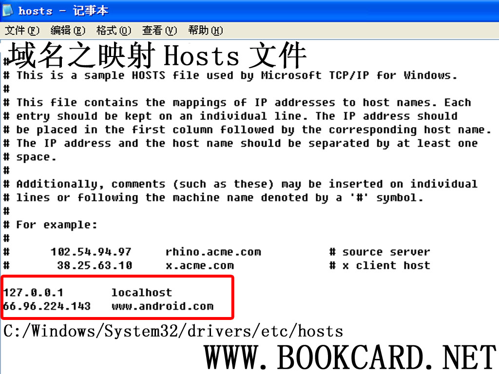 格式:IP地址 + 空格 + 網站域名