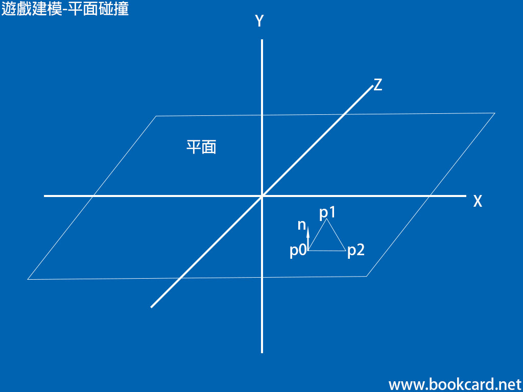 2.所有平面都將整個空間分成兩個半空間.正半空間為法線指向空間,負半空間則是令一則空間.這個特性對於碰撞算法重要