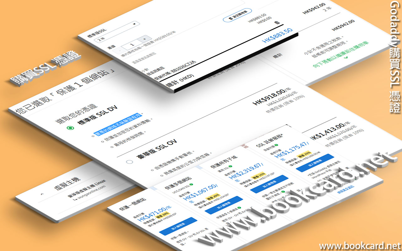 - 購買『SSL憑證』標準版『保護一個網域 提供 DV、OV 和 EV SSL 憑證』按『加入購物車』
