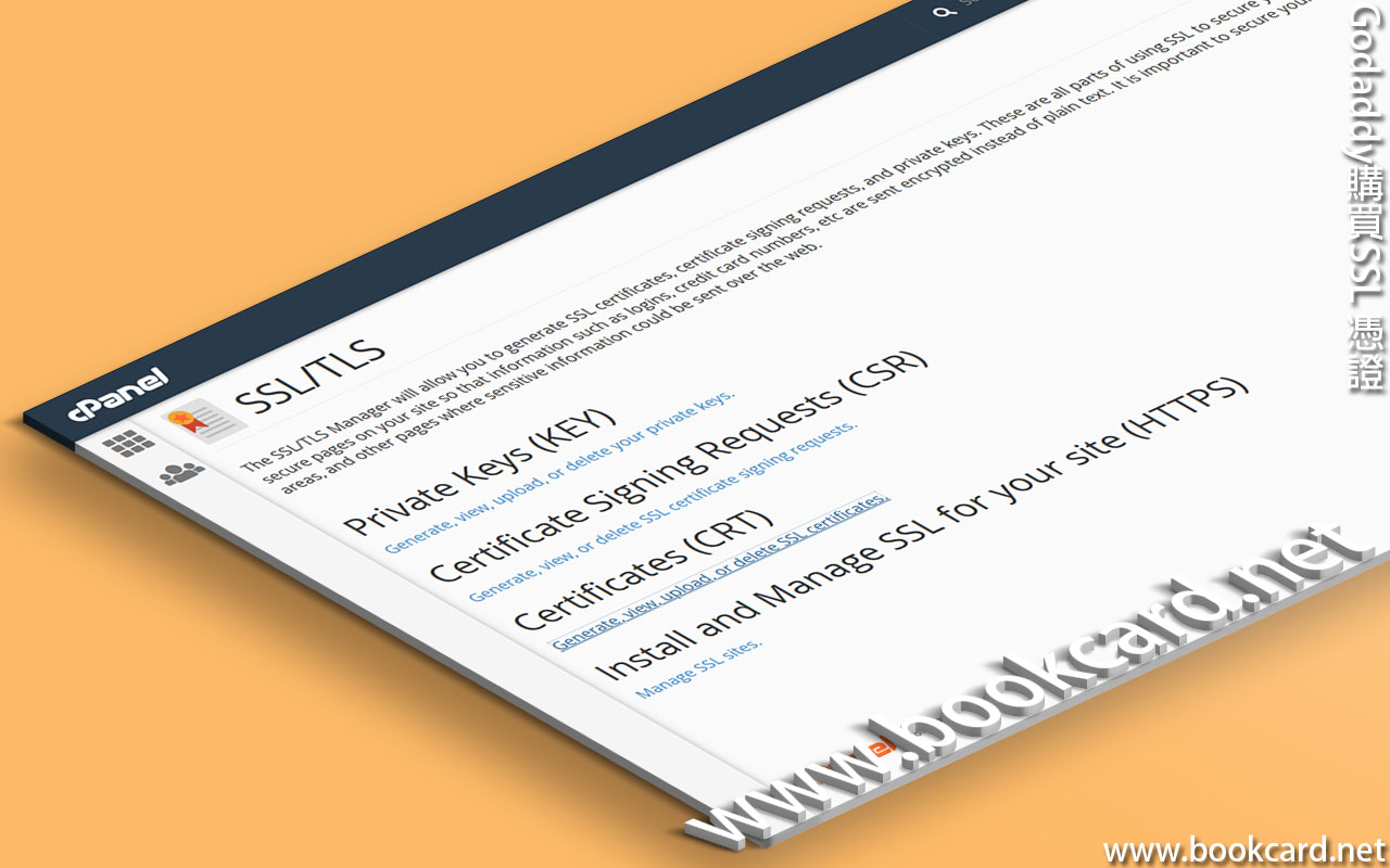 cPanel 主機安裝SSL憑證. Godaddy會對『主域名』Primary Domain自動安裝『SSL憑證』.否則需手動安裝.