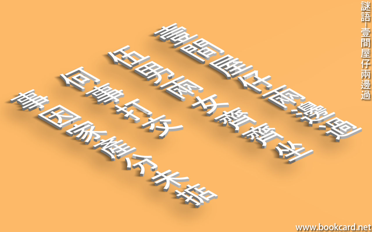 謎語-壹間屋仔兩邊過 作者:月和經倫 2022 年 2 月 21 日 在《謎語-壹間屋仔兩邊過》發佈留言 謎語-壹間屋仔兩邊過 壹間屋仔兩邊過 伍男兩女齊齊坐 何事打交 事因家產分未掂 貼士: 謎底: 算盤 作者:月和經倫 月和經倫 檢視更多文章
