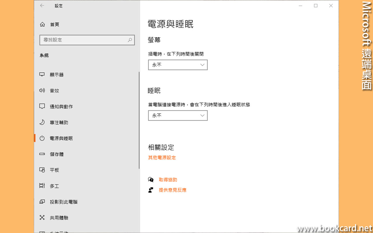 - 『睡眠 當電腦連接電源時, 會在下列時間後進入睡眠狀態』揀『永不』