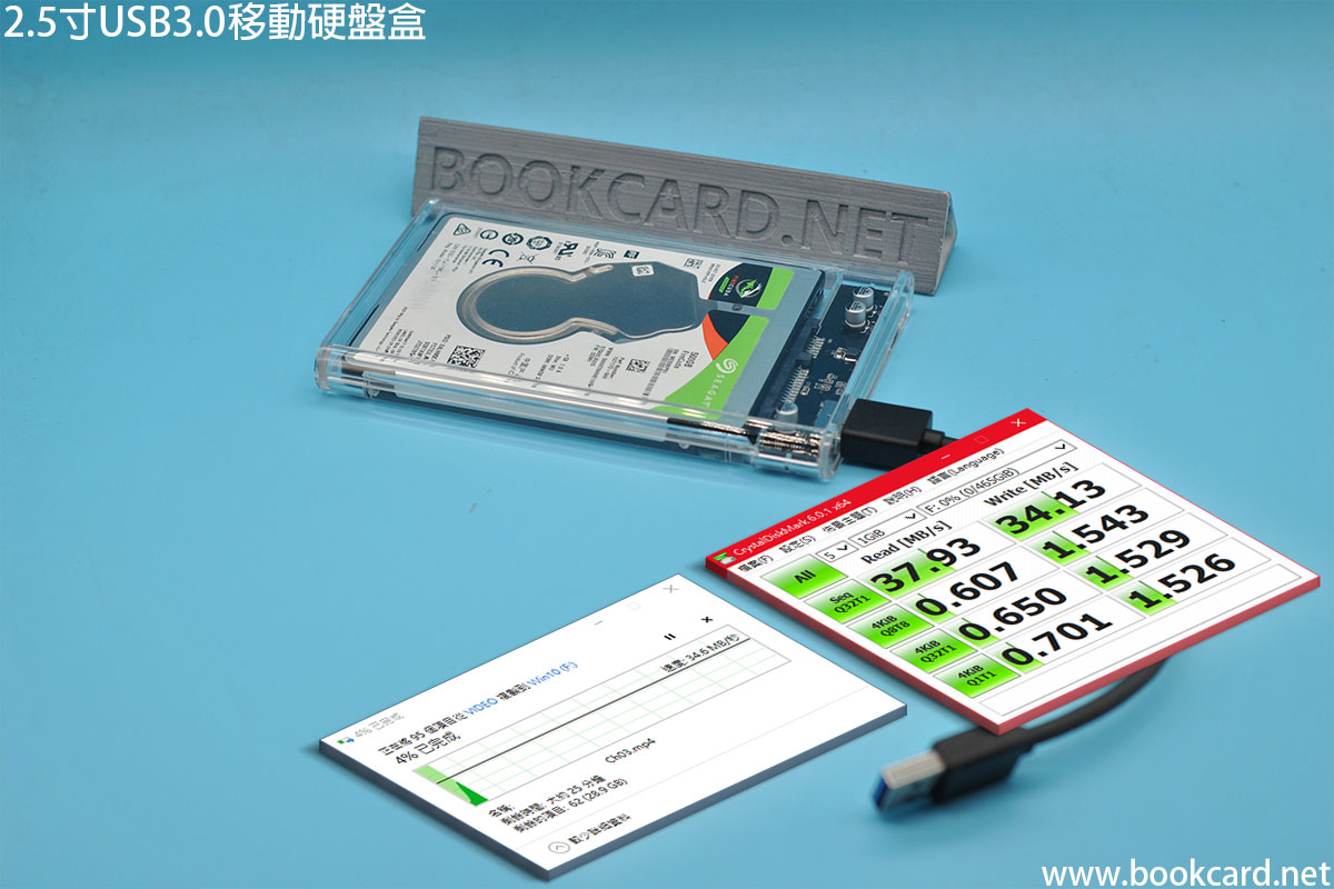買『東芝固態磁碟』後『希捷筆記本磁碟』淘汰落來.在網上買『硬盤盒』存放韓劇以廢物利用.買左USB3.0因為筆記本磁碟讀寫速度大約35M/S左右.而且USB前置分線器也是3.0買USB3.1根本無用.推開上蓋即可插入2.5寸磁盤.用CrystalDiskMark測試讀寫速度比與用SATA要慢.睇來是USB主控芯片問題.