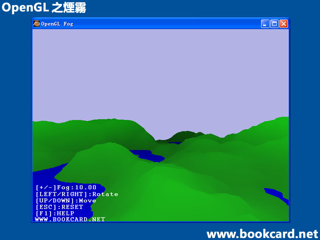 煙霧(Fog)使遠距離的物體變暗,近距離的物體變得清晰.是遊戲中常用特效.OpenGL煙霧將每個像素煙霧色進行混合處理.