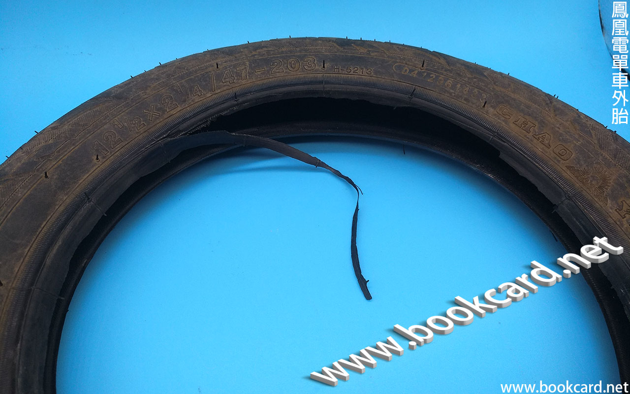 外胎裙邊脫落鋼綫外露 部車電單車又是後輪出事,打兩手氣過左兩日漏嗮氣.點知打十幾手『砰』爆左.內胎因皺褶嚴重爆開.外胎裙邊脫落鋼綫外露.聯係廠家願意補寄內外胎.睇來12寸胎易爆.也可能質量問題.因大尺寸爆胎無甘爆.