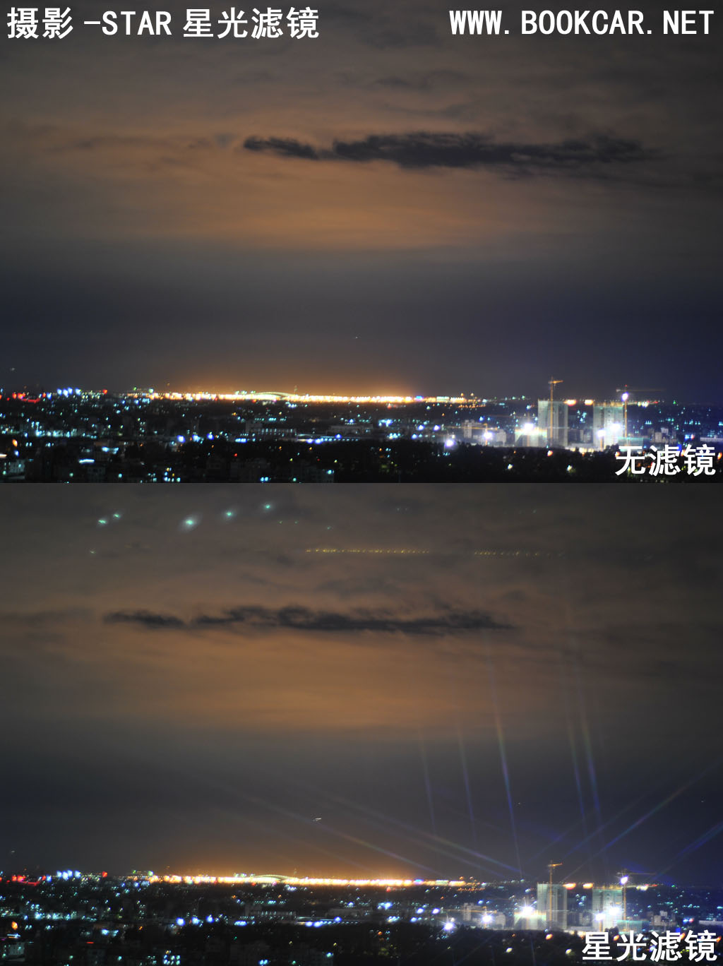我手上只有6線(雪花鏡),我影左張夜景對比照效果顯著.最奇特的是令雲層反射地面燈光.