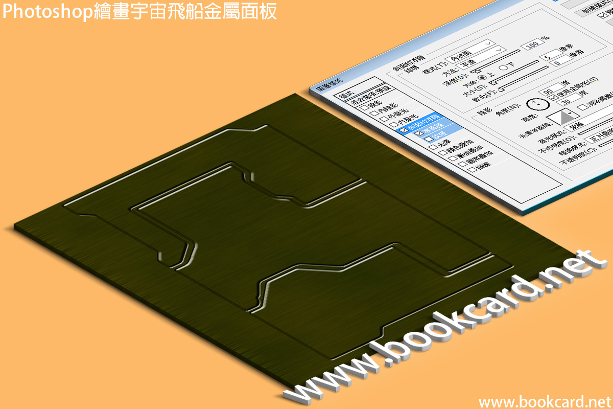 - 提升『面板』具有立體感,對圖層應用應用『斜面和浮雕』Bevel and Emboss樣式
