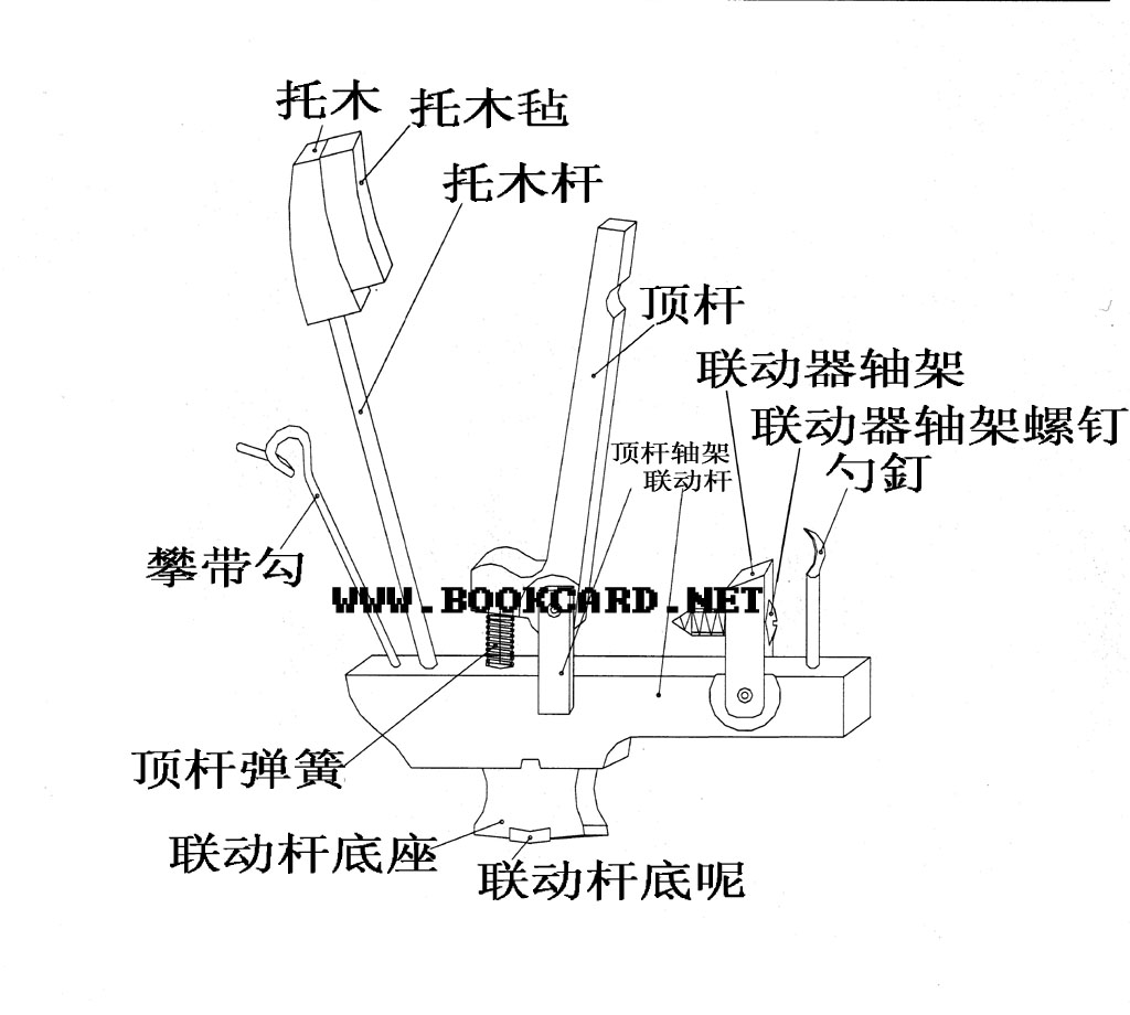 聯動器是鍵盤機械的第二級杠杆擊弦機是通過鍵杆尾端的頂柱使聯動器獲得向上的動力