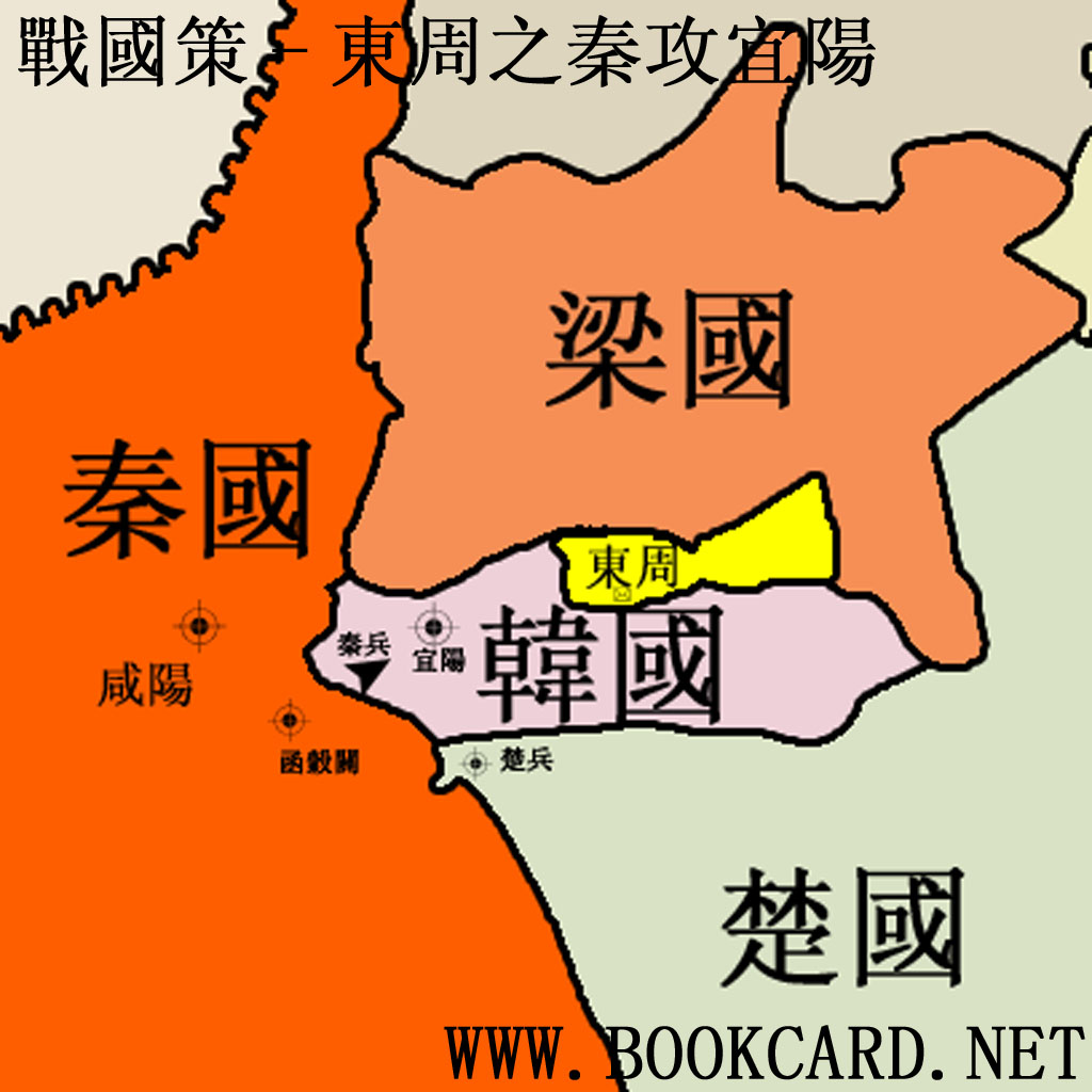 秦兵已攻打近五個月,戰事持久慘列.東周君非常擔優,因為宜陽城一破,秦兵下一個目標將是洛陽.所以救韓國等於救東周.