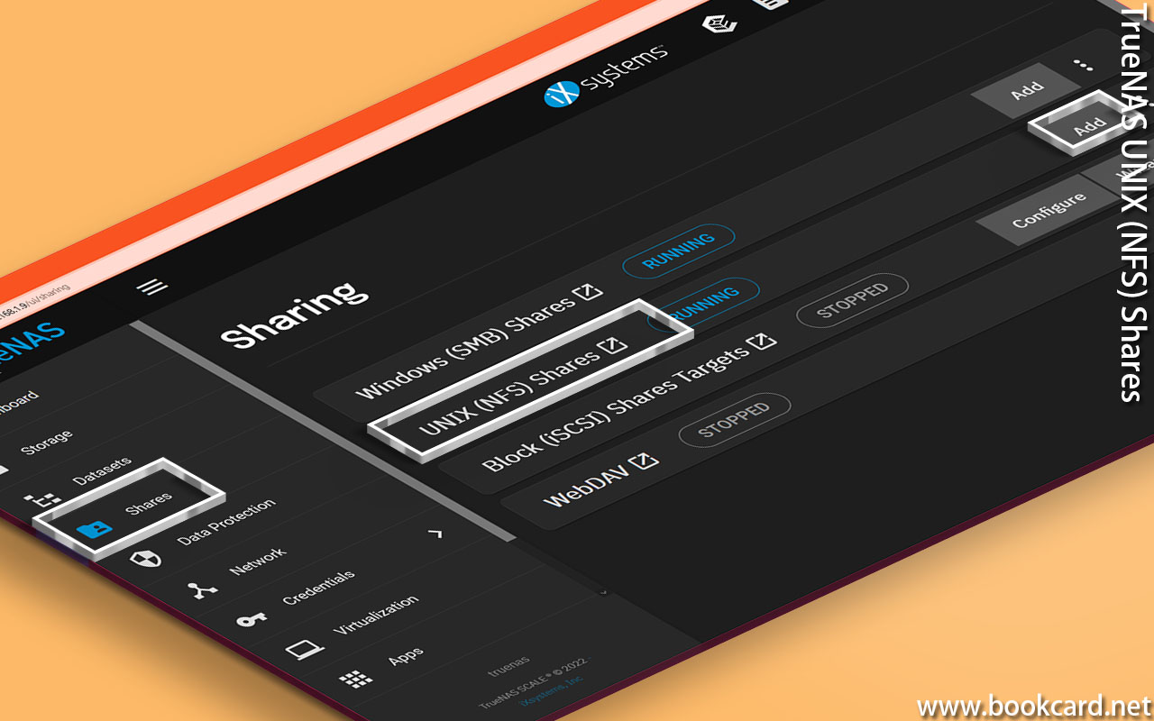 - 撳『Shares』->『UNIX (NFS) Shares』->『Add』.