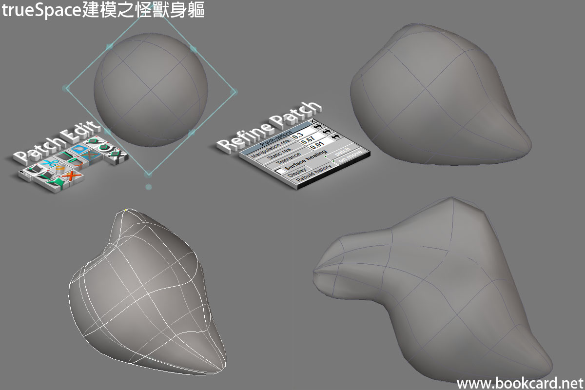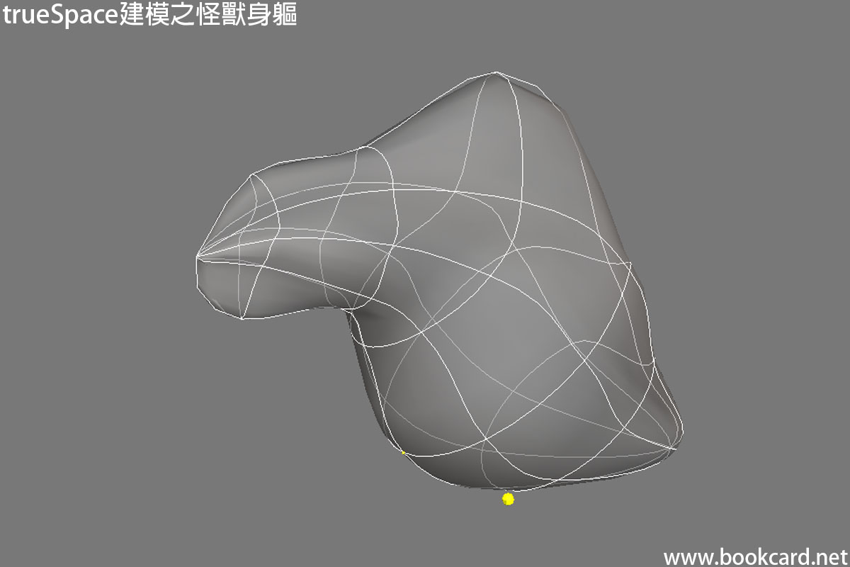 以trueSpace構建『怪獸』Kaiju身軀,並以NURBS方式建模.你可以在五分鐘內完成模型.