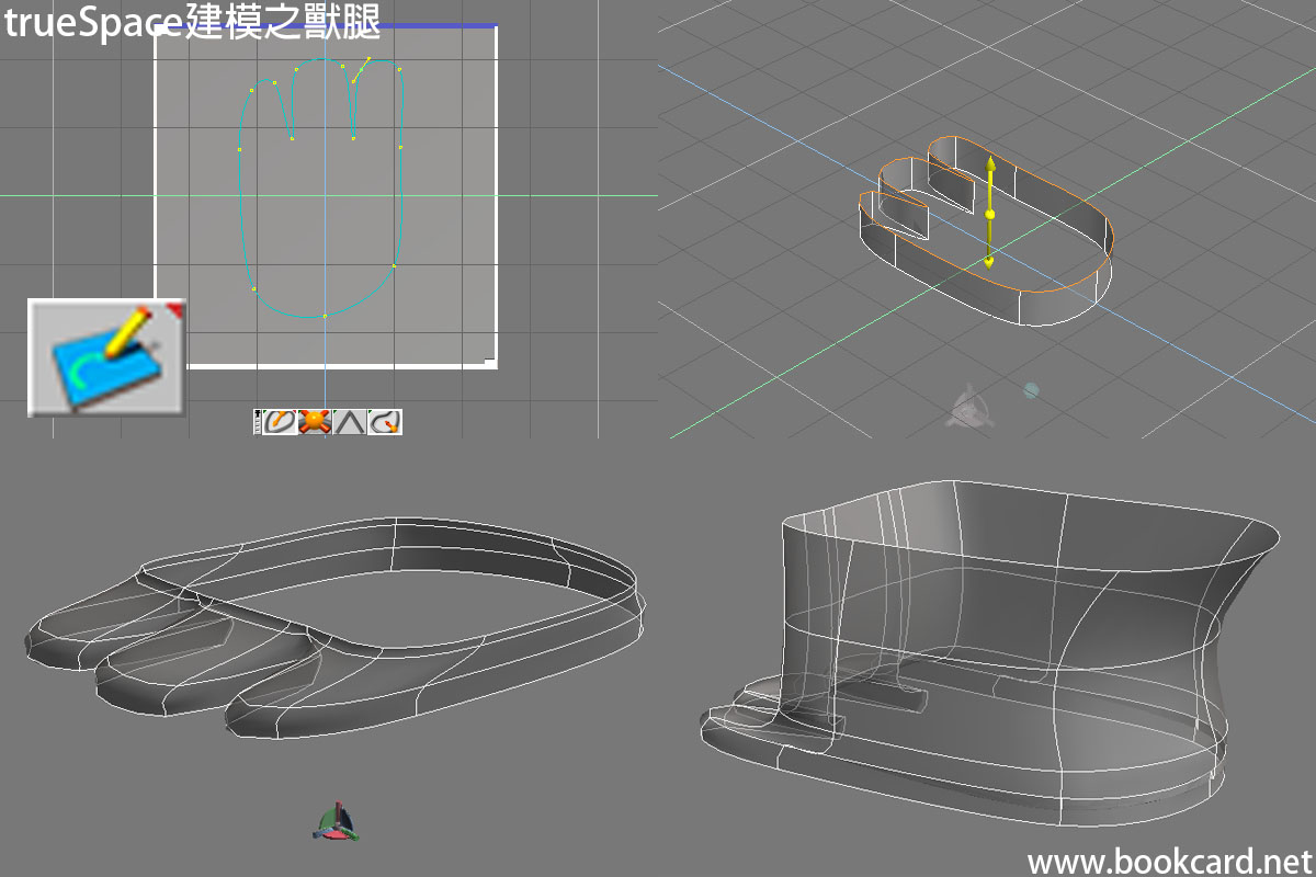 1.      首先使用『繪畫面板Draw Panel工具繪畫腳掌曲線然後拉伸.制後繼續『擠壓』建