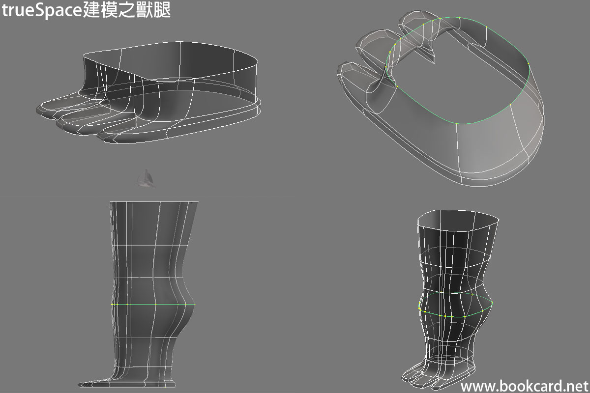 4.      重複第二部繼續通過細化片面在頂部添加曲線.並通過『移動』與『拉伸』槊造小腿與大腿.
