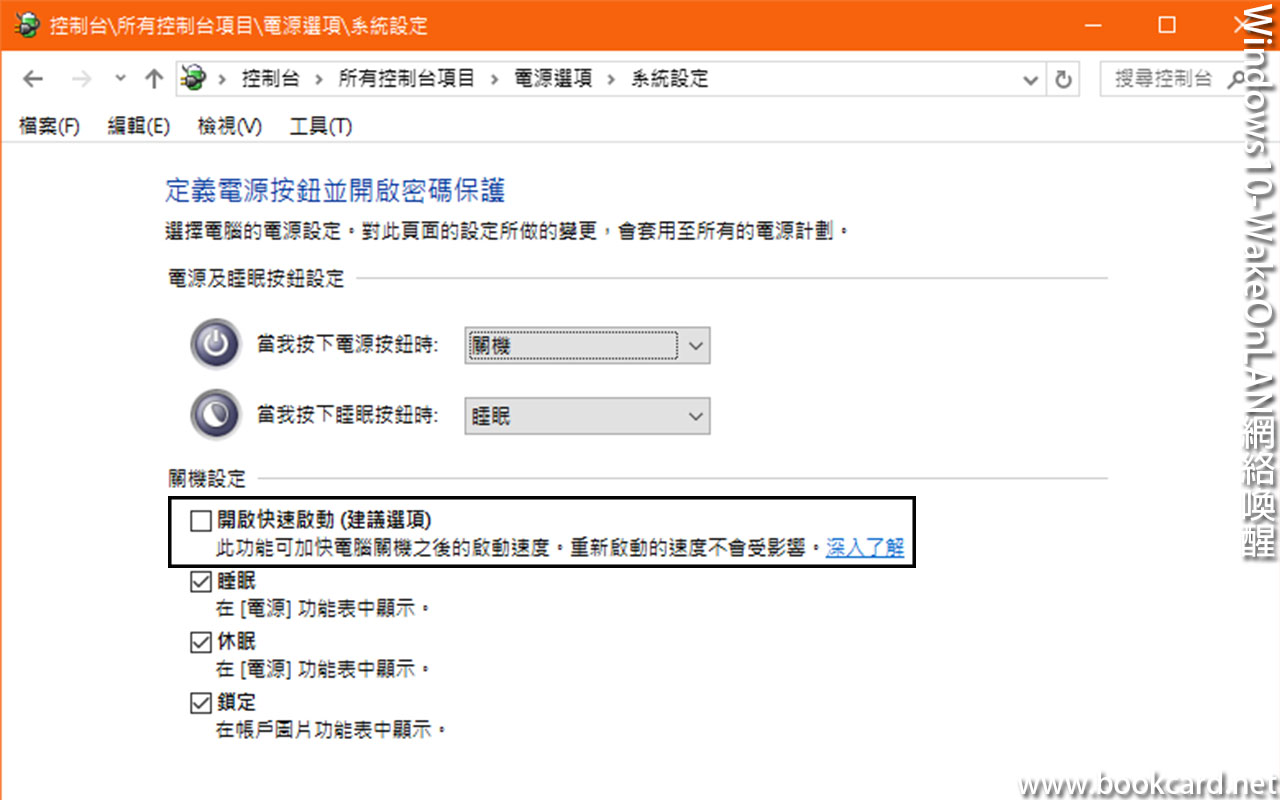 - 禁止『開啟快速啟動 (建議選項) 』. 事因『混合式關機』停用