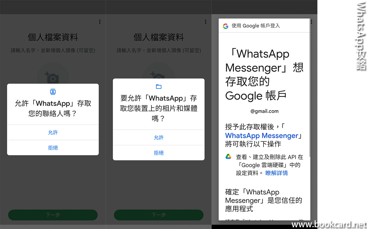 - 允許存取『聯絡人』『相片』『媒體』『google帳戶』權限.