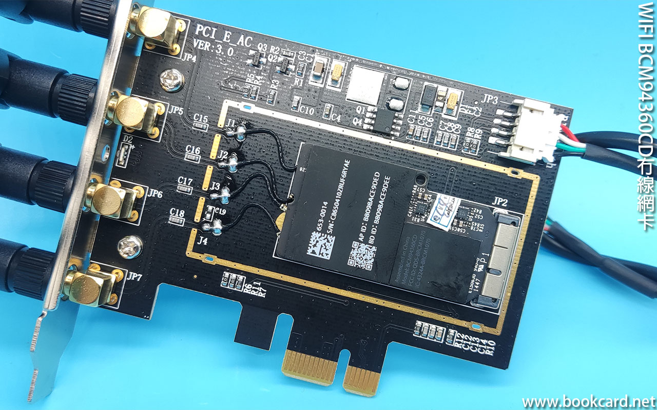 Broadcom博通BCM94360CD射頻芯片,苹果機經典肆天線冇線網卡,三條WIFI天線,壹條藍牙天線.