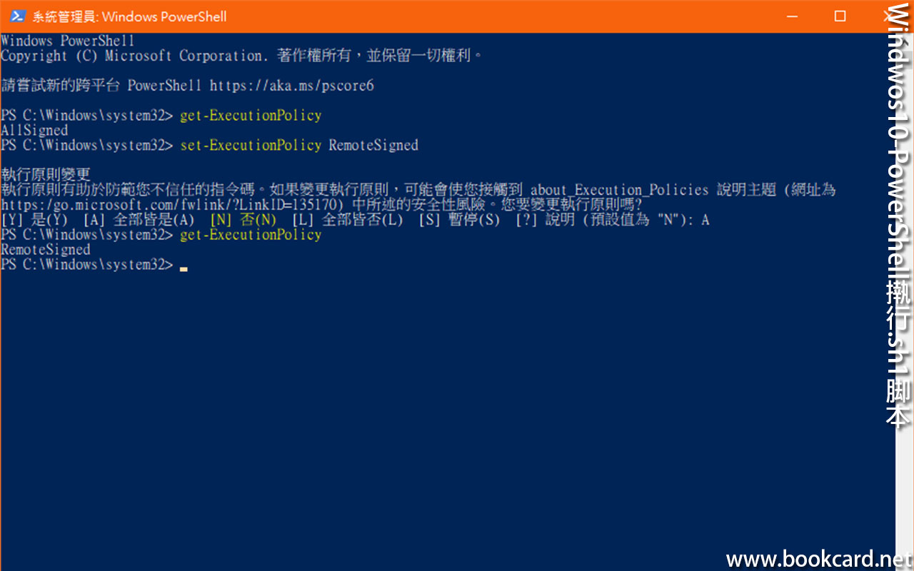 改為『RemoteSigned』允許𢴇行『.sh1』脚本.